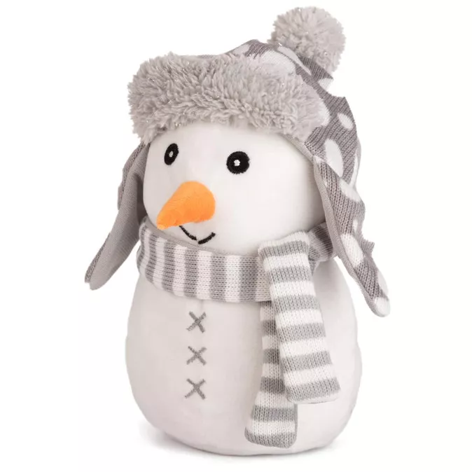 Бързо, бързо можете да се сетите какъв е отговорът на тази детска гатанка, а именно снежният човек. За разлика от своите истински събратя обаче, нашият Снежен човек със сива шапка и шал никога няма да се разтопи и ще ви радва дълго време със своята слънчева усмивка.